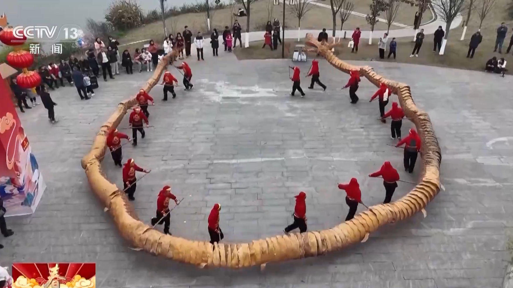 在四川眉山青神县,当地舞起雅致的“竹龙”,共庆新年。一条长达38米的“竹龙”,在舞龙队员的手中,凹凸翻飞。