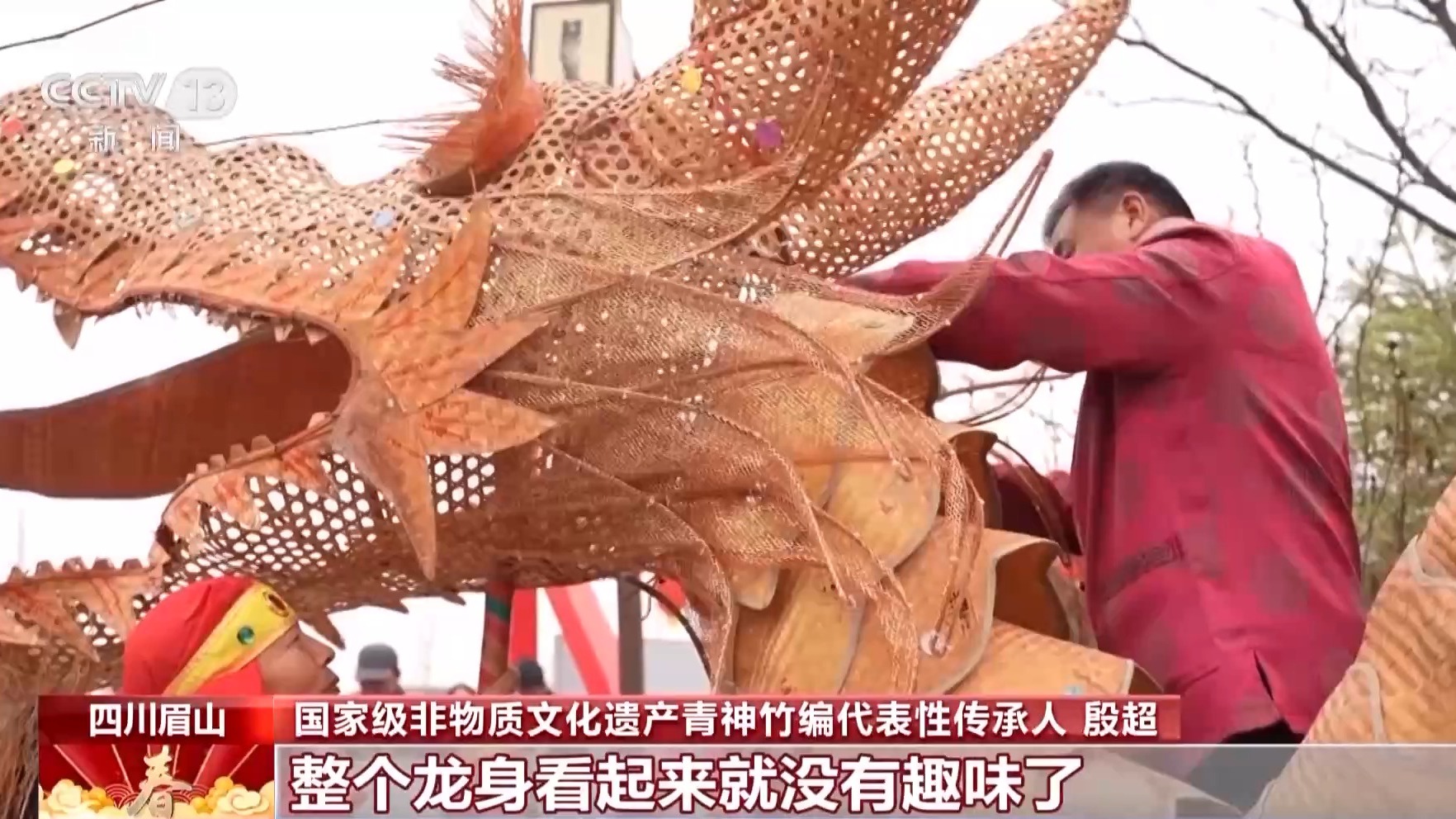 据先容,“竹龙”由龙头、龙骨、龙尾、龙翼拼装而成,经受国度级非遗青神竹编工艺。其中,龙骨架以当地慈竹为原材料,经32说念工序制作而成。在“竹龙”的制作经由中,龙头是最难亦然最要道的一环。