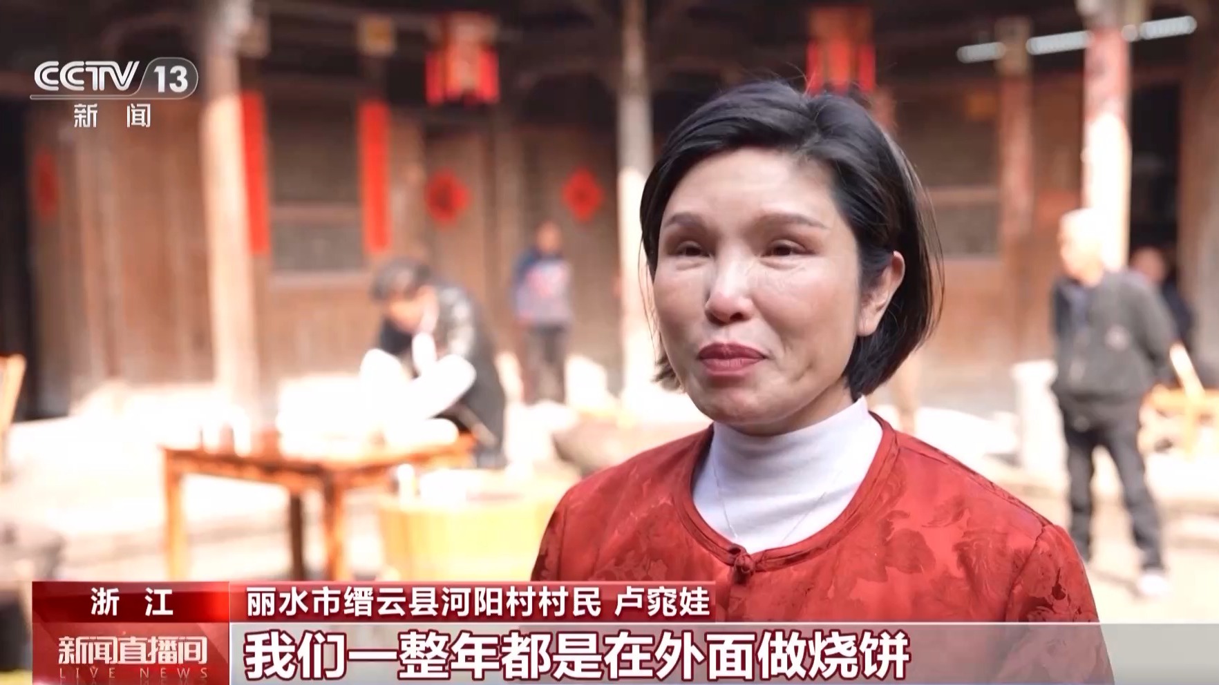 丽水市缙云县河阳村村民 卢窕娃:咱们一整年齐是在外面作念烧饼,每年过年的时代咱们齐会回到家乡来,作念烧饼给家里东说念主吃,然后看到小孩子们吃得这样忻悦,我心里也特别舒畅。