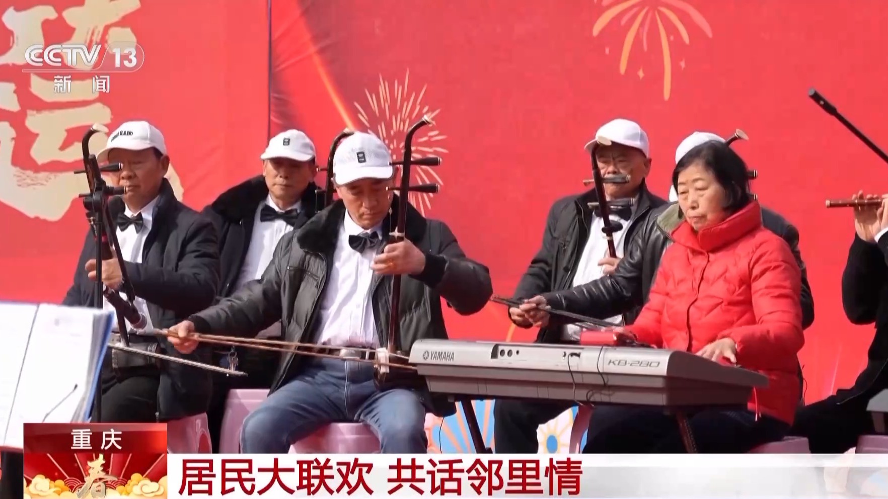 春节之际,在重庆巴南区花溪街说念佛建社区,举行了一场住户联欢活动,内行团员在这里,共庆佳节。