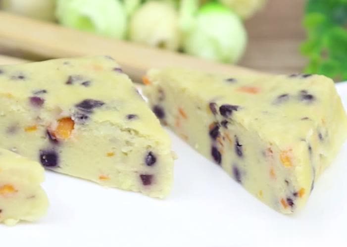 第六步:终末咱们把土豆饼取出,恰当放温,然后脱模切块即可食用。
