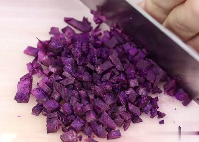 第三步:之后咱们把紫薯和胡萝卜去皮切成细碎备用。如若你思作念出来的粗粮土豆饼更富缜密,也可以把这两款食材放在破壁机中恰当打碎,但不要打成糊糊哦。