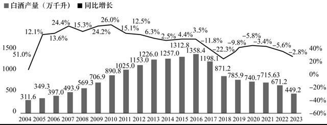 2016年,寰宇白酒产量为1358.4万千升,达到了历史顶峰,尔后逐年下落,到2024年,仍是降到了414.5万千升。