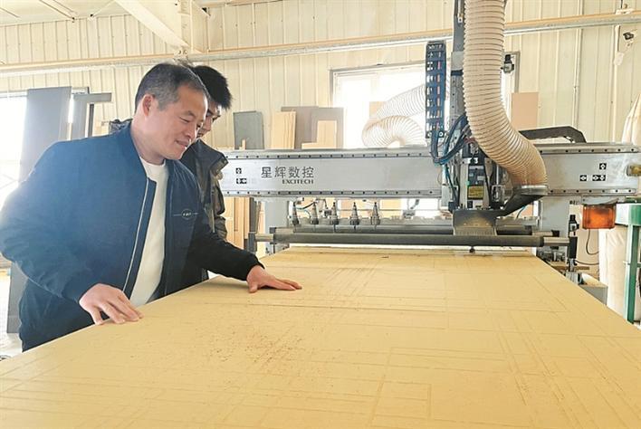 3月25日,在五师双河市中盛产品有限公司坐褥车间,职工在查验板材质地。 兵团日报常驻记者 张培丽 摄