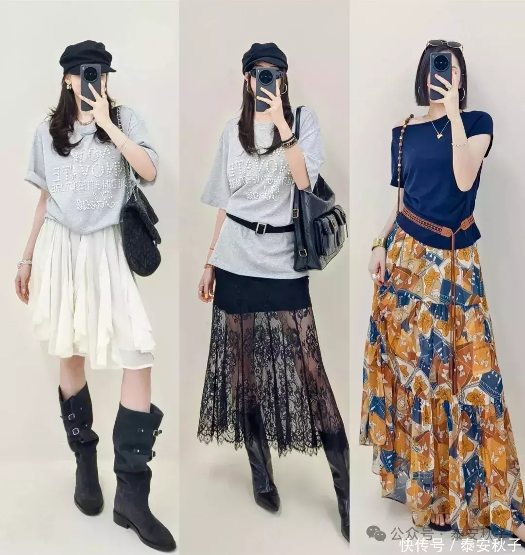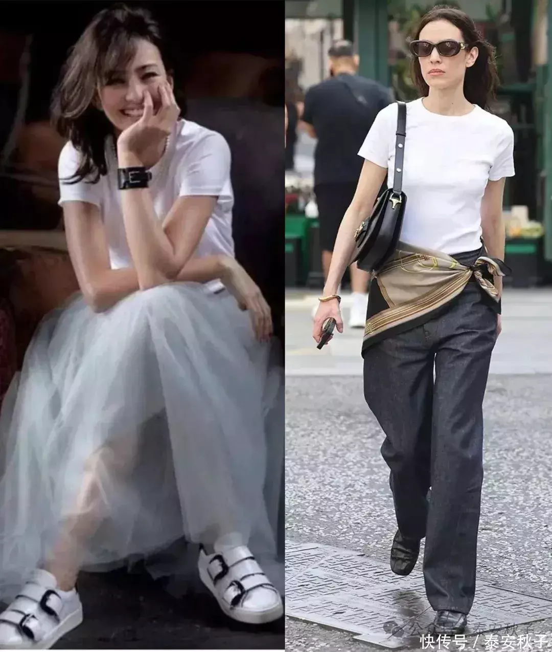 纯棉或是亚麻材质的白色T恤衫,穿起来浅薄又自得。不错用带着璀璨、清甜气味的灰色网纱裙格外,两种不同的材质搭配在通盘,镇定穿出过错又即兴的作风。