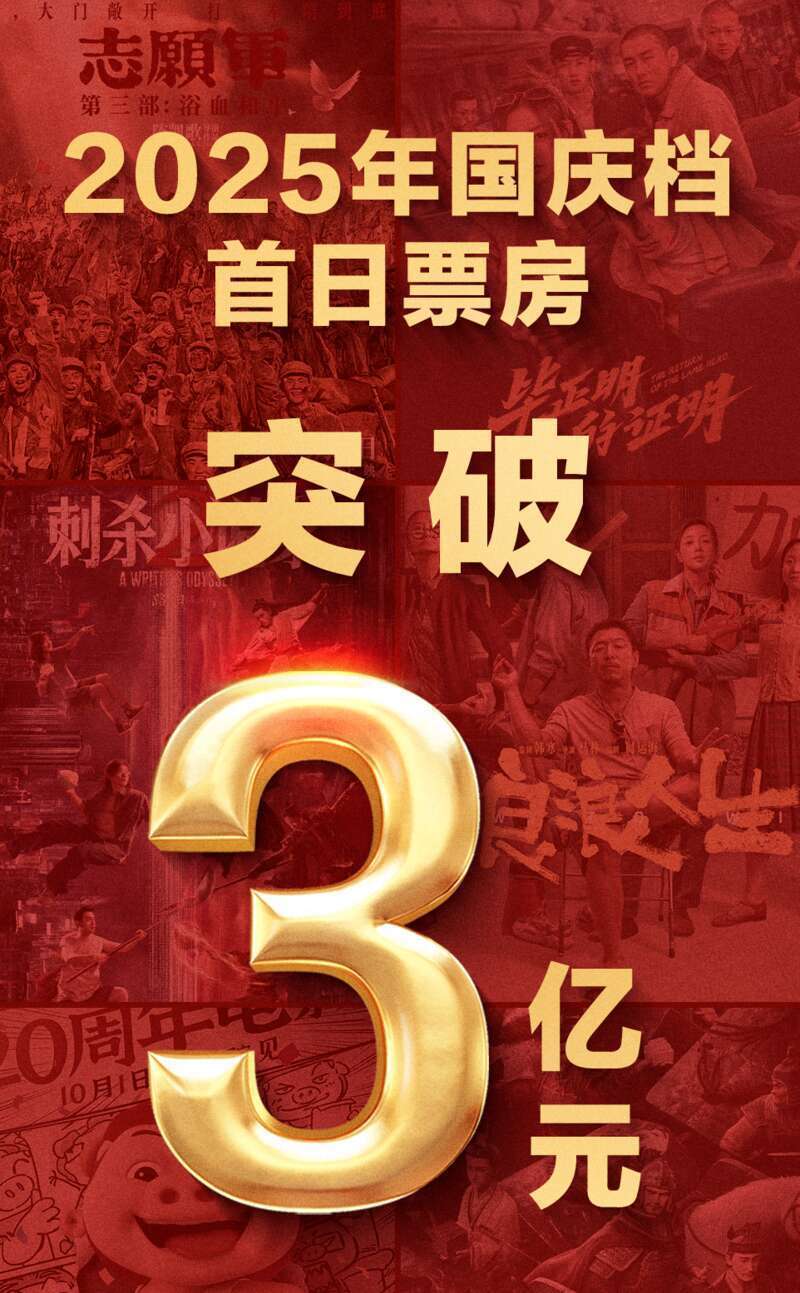 《志愿军:浴血和平》成为2025年国庆档首日票房冠军,《刺杀演义家2》《731》分列二三位。