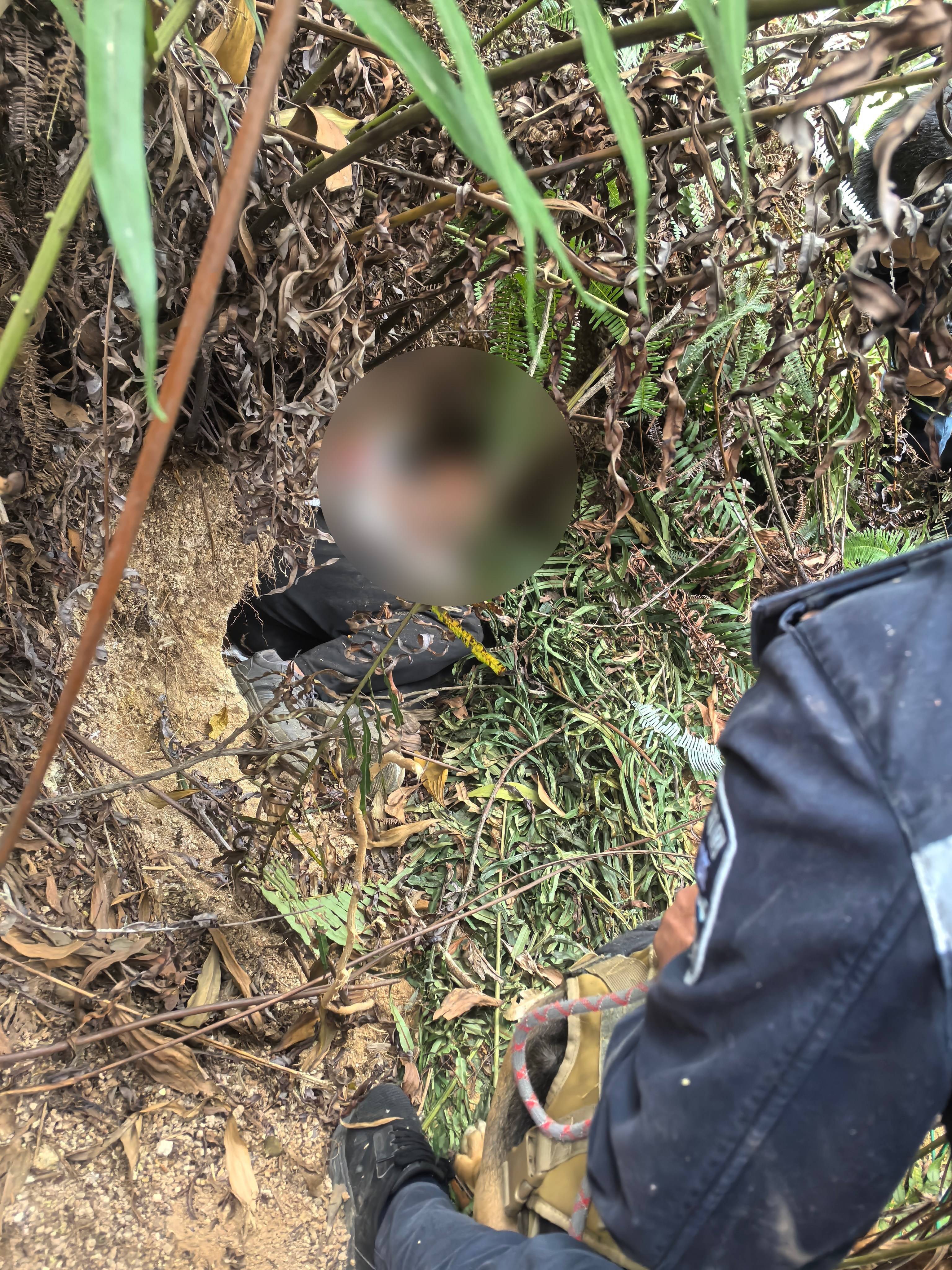 男人躺在岩穴中,被民警找到时已相识糊涂。